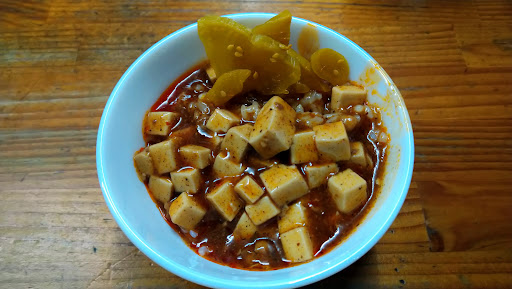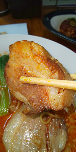 Read moreとあるお店のトンカツを食べに行く途中だったのだが、信号待ち中、ほぼ満車だったお店の駐車場が丁度一台分開いたので、何だかこのお店に呼ばれている様な気がして(笑)急遽予定を変更しIN! 店舗軒先には三人の待ち人。まあ時間もあるしと待ってみた。 15分程で入店。 店内は満席。チャーシュー担々麺(白)と甘辛ソースの唐揚げ(5個)をオーダー。火曜~金曜は麺を頼むと白米・麻婆豆腐・漬け物が付いてきてお代わり自由とのハイパフォーマンス。 先ずは担々麺が到着する前に白米・麻婆豆腐・漬け物を頂きました。6~7㍉角に綺麗に切られた小さなお豆腐が入った麻婆豆腐は香辣油が使われているのか香り高く且つコク深い味で非常に旨い。これがお代わり出来るなんて嬉しい限り。お漬物はグリーンのキュウちゃん。パリッとした食感が食べ飽きません。 麻婆豆腐にそうこう感動している内にチャーシュー担々麺登場! うわあ、チャーシュー厚っ!とビジュアルに感動。...