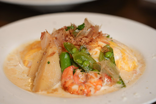 限定プレミアムオムライスは、竹の子と海老と春野菜が沢山乗っていて、トロトロな玉子とクリームソースとの相性もばっちり。