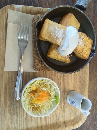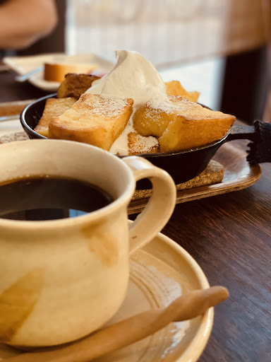 Read more4年程前にふらっと入ってからは年1〜2回の頻度でフレンチトーストを食べに来てます。一つ一つ違うコーヒーカップで提供されるコーヒーは美味しいんだが、鉄板で提供される熱々のフレンチトーストは通常の量だとちょっと多く途中で飽きてくる。あくまで自分基準だがモーニングセットの量が自分には丁度いい。 本屋と同じ建屋にあるが少し離れてるので気にならない。広さは普通だがテーブルは狭め。その為カバンを置くためのカゴが足元にある。最近コンビニでもやめつつあるフリーWi-Fiが使えるのはこういう店では珍しい。 何にせよ、美味くて手頃な値段のフレンチトーストを食べるのを目的に行く店はここしか知らない。 毎月6のつく日はポイント2倍?の日らしく知らずに行ったら座れず待...