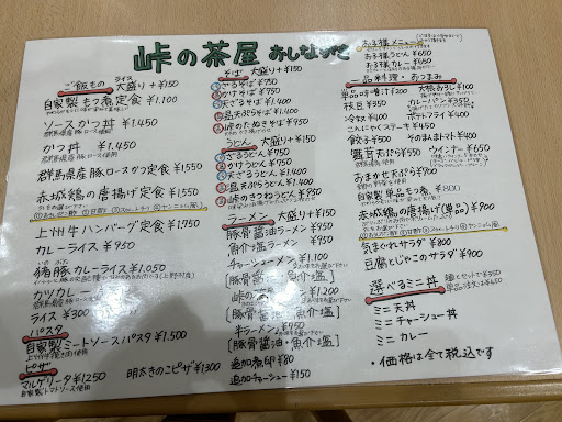 Read more【2023/5/3】 横川駅からアプトの道を散歩していたら、楽しくなってしまい、峠の湯まで歩いてしまいました。 疲れており空腹だったので休憩をしたく、峠の湯にあるカフェ「アプトの道」を利用しようと思ったら、17時を回っていたため閉店。峠の茶屋(お休み処「やすらぎの場」)を利用しました。 峠の湯内にある食堂ですが、食事利用のみなら1時間館内無料で入れます。 通常通り靴を下駄箱にしまって鍵をフロントに預けるので時間は正確で、1時間を越えると延長料金が発生しますとの事でした。