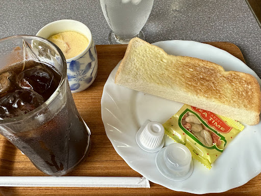 トースト、茶碗蒸し、お菓子。 茶碗蒸しは熱々で竹輪と蒲鉾が入っています。 この感じね、ローカル喫茶店にありがちな感じがなんだか落ち着く。 トーストももっちりとしていて美味しかったです。...