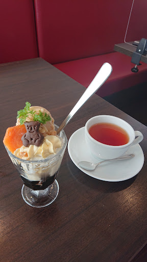 そして、パフェ…。 見た目も可愛らしく、とにかく美味しい♥ ほろ苦コーヒーゼリーの上に、苺のアイス。 相性ピッタリ🍓 甘いモノはあまり得意じゃない私も、最後まで美味しく頂きました✨