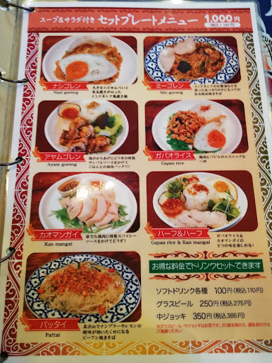 ランチで親と一緒に利用しました。 ここはいつも混んでいるそうな。 平日だったのでランチバイキングはいなかったのですが13時前の来訪時には他の客はそんなにいなかったです。 セットプレートよりもお得そうなインドネシアプレートを注文しました。 もう一つはナシゴレン。 セットプレートより200円プラスですがボリュームがありました。 とり串はチープな感じがしましたが、小松菜?の炒めものやピリ辛野菜炒めなど全体的に美味しかったです。 ナシゴレンはちょっと残念な感じだったかな。 ただ、土日のランチバイキングがお得なだけに割高な気がしてしまいました。 デザートの揚げバナナも美味しくいただきました。 食べ終わる頃他の客も来て少し混んでいた印象。 今度はバイキングが行っているときに行ってみようと思います。 追記︙奥には小上がりのフローリングスペースがあります。 二人なら余裕で、四人でも入れる広さで0歳の子供を連れて行くには丁度いい場所でした。 ベビーカートを前に止められる余裕もあります。 中央の四人テーブルも、椅子を退けてベビーカートをつければ食べられる席もあります。 子供には離乳食を持っていって食べましたが特に嫌な顔をされることもなく接客していただきました。 今回も平日でハーフ&ハーフのカオマンガイとガパオをいただきました。 ガパオにはバジルが入っていなかったのでちょっと物足りない感じ。 カオマンガイの鶏肉は太めの肉を大きく切ってあるのでスプーンで小さくしてから食べましたが多分胸肉。 胸肉の割にはしっとりだけどシンガポールではモモ肉だった気が… ゆっくり出来る雰囲気で、一人で来ても居心地...