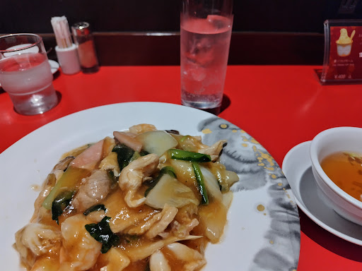Read moreちょっと上品に中華を食べたい時には丁度良い店構えで、ディナータイムに利用したが、フレンチ等のようにナフキンなんかがテーブルにセットされていた。 でも多分リーズナブルなお値段設定だと思う。 単品も品数多くお安く済ませることも出来るし(一人2,000~3,000予算)コースなら3,000台と5,000台、8,000台。 家族で利用したのと、町の中華屋さん以外の中華を滅多に利用する機会が無いので 今回はちょっと奮発して5,500円のコースを注文。因みにコースは2名様以上で注文出来るらしい。 デザートまで合わせて8品。 大エビチリは美味しかった。あとの料理も美味しかったけれど、中華なので味が全て濃い。白ご飯が欲しくなる。 チョイスしたコースには五目焼きそばが付いていたけれど、単品で五目チャーハンも注文していたのでチャーハン待ちで小皿に味の濃い料理を乗せて待っていたが最後に登場したので料理が冷めてしまったのが残念。あとチャーハンはパラパラ系ではなく、しっとり系らしく パラパラ系が好きなら気に入らないと思われる。 中華なので仕方ないけれど全体的に味付けも濃く、飲み物は烏龍茶を頼んでいたのだが、私達は各々3杯づつ飲み干しました(笑) 気軽に利用できるちょっと高級感を味わうお店…としてなら丁度良いと思います。 我が家はグルメでは無いので初めて干し鮑のお料理を頂き、あ~、こういう食感なのね~ と勉強になりました。息子達にテーブルマナーを教える良い機会になったかな?とも思いました。ナフキンの作法だけですが(笑) そういった意味では今度は機会があったらフレンチに家族で行きたいかも…と思うき...