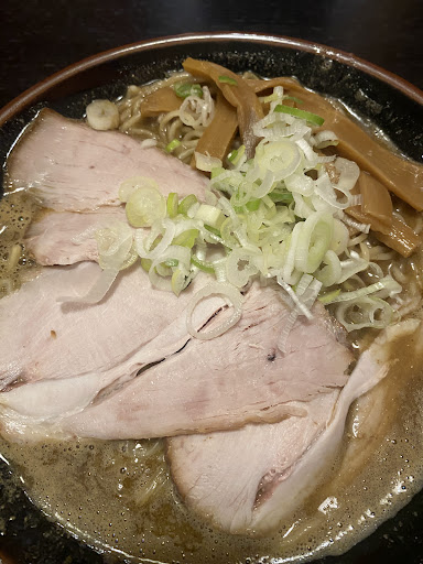 Read more2025.09.28訪問 濃口煮干(¥890−)+煮玉子(¥100−)+サービス半ライスを頂きました。 ラーメンが配膳されると、丼から上り立つ豚臭に「アレ!?…このお店は豚骨の方が濃厚ナンだっけ??」と、戸惑いながらも丼最深部にレンゲを沈めてスープを啜ると!?濃厚な豚骨を軽く凌駕する大量の煮干を使用した、目が覚める様な煮干の塩味が「キリッ!✨️」と利いていて、更にアタマやハラワタも使用してると解る苦味や独特のお魚風味が、スープ全体にコク深さを加えてて、個人的に凄く好みで美味しいです。 自家製の角型断面中太麺は、うどん並のツルッツルでモッチモチ♬プリプリと歯切れも良くて、食べてて楽しいです。 最後は半ライスに載せた玉子を割って、塩っぱめスープをかけて完食!お腹いっぱい...