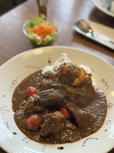 Read more珈琲にはこだわりのあるお店でも、意外に珈琲カップはあっさりというか素っ気無いお店があるものです。 こちらのお店の珈琲が運ばれてきた時にちょっと驚き。 カップがロイヤルコペンハーゲンのイヤーマグ、それもファイアンス。 ロイヤルコペンハーゲンといえば白い磁器に青色で絵付けされた美しい食器で有名ですが、それとは異なるファイアンス製法で作られたヴィンテージ。 こういう味わいのあるカップで珈琲を出す事に、お店の珈琲へのこだわりと愛情を感じます。 珈琲好きにとっては器も大事。 ブレンド珈琲は、口にした刹那やわらかな酸味と甘味、その後にしっかりとした苦味、それからコク深さを感じさせられたのち再び酸味と云う流れのお味。後味にわずかにえぐ味を感じましたが、それでも間違いなく美味しい珈琲だと思いました。 カレーは欧風カレーな見た目。 見た目から想像したよりもカレーソースはスパイシーで辛い。辛さがあとからやってくる。 もっともエスニック風カレーのスパイシーさや辛さとは異なる。 こういう感じのカレーを提供するカレー専門店が青森市内では見かけなくなって久しい。 接客、店...