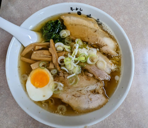 Read more青森市シーナシーナ道路挟んで向かいにあるラーメン屋さん。 駐車場は店の前4台分くらいあります。 店に入るとすぐ券売機があり、店員さんが案内してくれました。 席はカウンターとテーブル席あり。満員でした。 出し屋と名付けてるだけあって、煮干し出しが強いラーメンを出してくれます。 オススメはバラそばとバラ味噌らしく、頼んでみました。 バラそばは要は煮干し中華のチャーシューメンですね。 煮干し風味がしっかりしてます。 バラチャーシューは売りにしてるだけあって、トロトロで食いごたえがあり美味かったです。 ただ、津軽らしく塩気がしっかり効いていて、薄味好みの方には少ししょっぱいかも…。これは好みですね。 バラ味噌は煮干しベースの味噌チャーシューメンですね。 こちらも煮干しがしっかり出てきますがその後にくる味噌風味も相まってまろやかになり美味かった。味噌ラーメンだけに中太麺でしたね。 やはりこちらもバラチャーシューがとろけて美味い。 さらにギョーザも頼みました。 ギョーザもジューシーで美味かった。 値段は今時にしては安い方だと思います。...