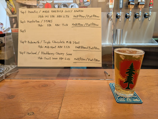 They had several handles but only 5 were tapped so I assume they are regularly rotating their taps. The night I went, 4 were IPAs and 1 was a golden stout. One of the IPAs was from a Japanese brewery (Kumamoto) and the rest were American. It's because of this I docked 1 star - I would have liked to have a little more variety, whether from locale or beer type. That being said, I still enjoyed the beer I drank. It should be noted that they pour beers with no head as is the trend. And, they offer half glasses for their pours if you're keen to try them all but concerned about your alcohol tolerance. There is also a fridge with drinks but I didn't check it out.