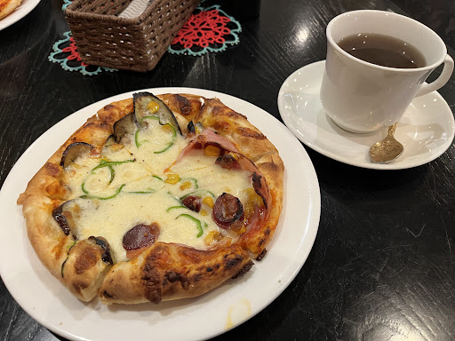 Read moreピザとドリンクのセット、リファセット¥1350注文。ピザはミックスのハーフとナスのハーフ、ドリンクは黒酢のジュースのホット、チーズの量多く美味しく頂きました。 ゆっくり食事ができ知...