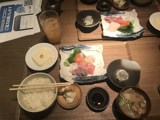 Read moreThe place was very good. I ordered the sashimi lunch set for ¥1650. The sashimi was delicious, very tender and fresh. The set came with miso soup, tofu, cabbage pickles, and shredded daikon with raw minnows. With the side of rice it was very filling. I also ordered the fried chicken. It was very juicy and crispy. The side order came with mayonnaise, lemon, and shredded daikon with ponzu. I was very full at the end of my meal. I’d like to come...