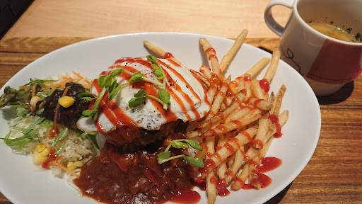 Read more本日2回目の来店でした。 最初の印象があまりにも良くて、かなり期待して前回と同じメニューをチョイスしました。 が、スープが生ぬるくてとても飲めませんでした。 普通温めて出すものでは? 連れがハンバーグを頼みましたが、ランチにしては結構お高めでした。味は、値段に見合うものではありませんでした。 トレーに何の為の物か分からないソースが 二つ載っていました。ハンバーグを食べ終わってから店員さんに聞きました所、まさかの ハンバーグの何もついていない所用のソースだと言われ呆れました。食べる前に一言言って欲しかった、、、 全然お腹がたまらなかったので、ティラミスを頼みました。が、これも失敗。中のスポンジがベチャベチャ過ぎて残しました。 ランチに付いていたアイスコーヒーこそは、と思いましたがこれもハズレ。薄くて美味しくありませんで...