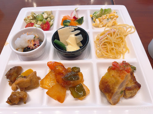 Read moreグリーンランド利用で一泊2食付きで宿泊し、朝、夕食、翌日ランチもこちらで頂きました。 オフィシャルホテルは パークに乗っかってクオリティが低くなるか、 パークでの思い出を更に底上げするようにクオリティが高いかのどちらか二極化している事が多いのですがこちらは後者でとても良かった! ハウステンボスオフィシャルホテルも前者にどんどん近づいていっているので見習ってほしい… ランチバイキングといえば揚げ物、保存が効く煮込みものが多く気持ち程度のコールド系というのが多いですがこちらは逆で手の込んだ低カロリー、かつ珍しく美味しいものが多くてびっくりしました! 以前Twitterで松屋が期間限定でシュクメルリというメニューを出して話題になっていて、気になっていたけれど食べられなかったのですが、 まさかここで口に出来るとは…!これだけでもとても良い思い出が出来ました! でもお気に入りはかぼちゃと水切りヨーグルトのサラダ。 美味しくてスタッフさんに何を入れてこの味が出せるのか聞いてしまったくらい美味しくて、 家で頑張って似たような味を作れるよう頑張ってます!でもこの一品つくるのもなかなか手間!凄い〜! グリーンランドもスタッフさんが優しい方々が多く(おじちゃんたち最高です!)アトラクションも楽しく、ホテルでは気軽にバイキングが食べられる上美味しい!また...