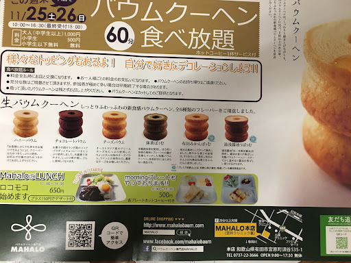 追加料金のデザートセットはバームクーヘン3切れとドリンク。ドリンクは紙コップ提供。 バームクーヘンはよくあるものと違い、年輪の色が薄く食感もかなりふわふわ。 マハロのクーヘンは初めてだが、インパクト...