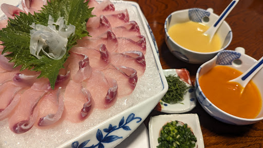 佐賀県有田町へ、日頃の頑張りのご褒美に鯉を食べに行きました(笑)。有名な方々もいらっしやってるようですよ!こちらは、とても風情のある建物で、個室もありますし、広いお部屋も(相部屋?っぽい)ご家族での対応もできます。場所が少しわかりにくいのですが、竜門峡(ダムです)を目指して行かれるとよいですよ。ただ、料亭でもあり、気軽に立ち寄れるカフェ所もあり、のびのびとできる広場(笑)、ブランコもあり、と、店舗が二カ所ありますので、お気をつけください。どちらの駐車場に行っても小川を渡る橋があるので、ご安心を!料理はとてもおいしかったです。川魚の王道、鮎……が、よかったのですが、私たちが行った時期はヤマメでした。が、とっても美味しくいただきました。次回はぜひ鮎を食したい!予定日の前日に予約して空いてるか心配でしたが、お昼より少し早めの利用11時からだったので、個室を用意してくださいました。 個室といっても離れのような出で立ち。特別感が、ハンパありませんよぉ。皆様行くときは、個室をご希望されてはいかがでしょうか? 鯉のあらいですが、酢味噌、と、唐辛子酢味噌?もありました。なかなかの辛さなので、辛いのが苦手な方は少しづつ挑戦されるのがよろしいかと(笑)。 追加で白子の握りをいただきました。んんんん~いとおいし(笑)でした。 ご馳走様でした! あと………余談ですが、お部屋を一生懸命温めてくれる、机からちょっと顔を出すファンヒーターさん。なんともかわいく、心も...