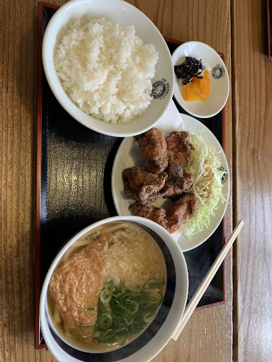 Read more何年も何年も前かあるけど初の大ちゃんうどん 1.2.3.ランチ有りで680円から800円 メインメニューの 唐揚げうどんセットをチョイス^^ 唐揚げお待ち帰りもあるのでベストちょかと^^ 後から来店の方も唐揚げうどんセットを注文^^ 麺は細めのモチッとした麺、汁は濃いめが好きなのでちょっとさっぱり感^^...