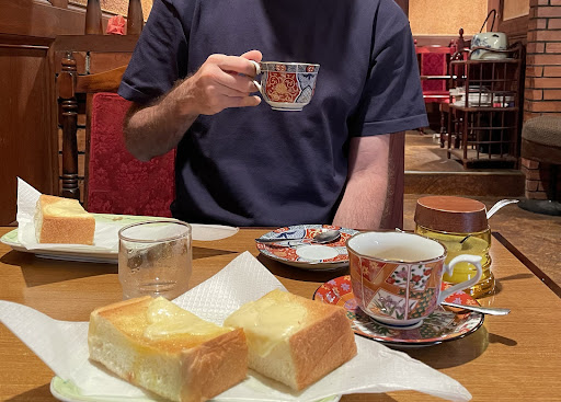 Read moreEine Zeitreise in das Japan der 60er, 70er Jahre. Ein offensichtlich tanzbegeisterter rüstiger Cafébetreiber. Freizügige Toilettendekoration. Und Getränke und Speisen im Stile des oben genannten Zeitraums. Etwas verraucht (auch heute darf noch unverändert geraucht werden), aber mit stimmiger Atmosphäre. Geöffnet ab 8...