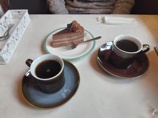 初めての有田陶器市! お目当ての器を求めて、事前チェックの工房の販売ブースを目指して、歩き回ってようやく購入するも…最終日の17時過ぎ、陶器市会場の撤収作業が始まる中、☔も降ってきて、先を急ぎながら…『せっかくの陶器市、何も有田焼の器で味わえなかったな~、☕カフェとかまだやってないかな~』と、有田駅に近くを探してたら…駅前に!営業中🙌 ちょうどOS時間…(18時閉店で申し訳ないけど、どうぞ😊)優しい気さくなマスターさん。 ☕🍰を注文して、有田焼のペア☕カップとレトロなお花の皿で、美味しい☕にほっこりする🍰 店内に流れる🎶、常連の叔母様方のにこやかな😊、『また来ます』(また来てね~)の心地良い純喫茶の空気感。ホントにまた来たいって思いました。次はゆっくり、🍴ランチも😋
