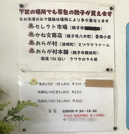Read more個人宅の玄関先で購入w生餃子が10個300円、冷凍16個500円 味付けサッパリ、皮はもっちり、餡は多め、キャベツのシャキシャキした食感が楽しめる。シャキシャキを重視なら生餃子、冷凍は肉と野菜が馴染んで...