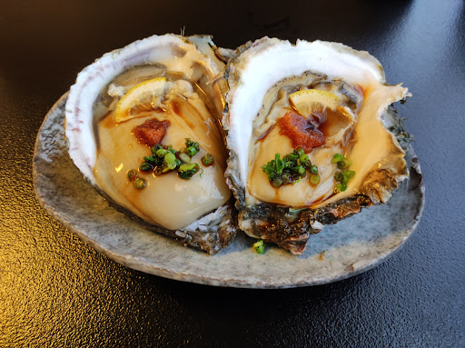 The oysters were enormous! Luckily we only ordered two each although one would have been better because they are nearly the size of a palm and very thick. They were delicious and the sushi set was also good. The sushi set included salad, miso and ice cream (you can choose coffee if you prefer).
