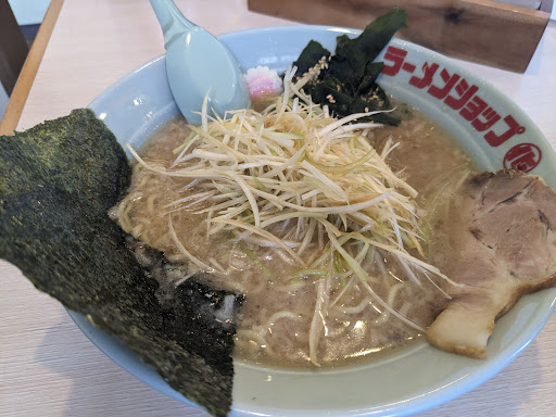 店内は余り席数もないので昼のピーク等覚悟が必要です。肝心のラーメンですがラーメンショップとしては多少トンコツ臭強めな店内 ネギラーメン800円とライス100円をオーダー 物価高騰で大変な中、ネギたっぷりのラーメンが800円...