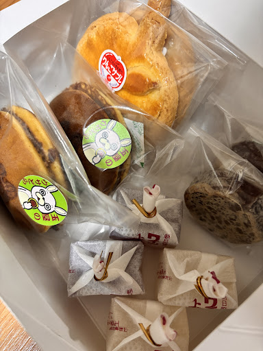 昔ながらのお店、お菓子やさんという感じです。品数は多くありませんでした。 どら焼きは大きめで、あんはつぶあんかと思いきや練りあん?白あんとつぶあんが合わされてるような…初めて食べる感じのどら焼きでした。ゆるキャラのウサヒの焼き印がしてありました。それからかぼちゃパイも頂きましたが、私の想像しているたパイとは違うパイでした。値段も120円と買いやすい値段でした。 おばちゃんがおまけくれました。うれしいですね。