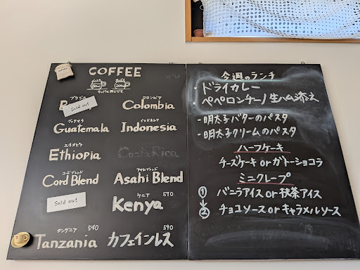 もはや主流と言えるスペシャルティコーヒーのお店ですが、それ以外も充実です。クレープも美味しそうですがランチも美味しそう。 店舗の規模からすると厨房はマスターさん一人で回しているんでしょうね。