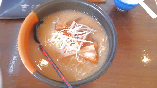 Nice ramen restaurant in Eastern Asahikawa area. Each soup type, soy-sauce(Sho-yu), salty(Shio), and Miso is good. Not too salty, and with deep flavors. The parking lot is enough, so you can easy get here by car. The restaurant faces to 4 jo dori, 4th avenue of Asahikawa. The photo is of...