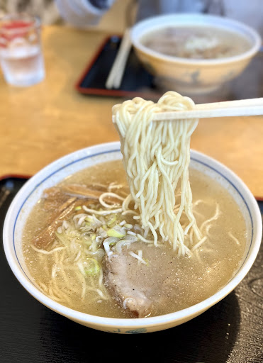 Read more4年ぶりに移転復活したとの情報を得て得て訪問。建物は以前よりも大きくなったが、寮の感じは同じであった。元々寮の食堂的な感じだったからねー。さて店主は以前いたおばちゃんではなくて若いお兄さんになっていた。入る時は靴を脱いで上がる。メニューはないのかなーと店内を見回すと、入って左に振り向くと黒板に書いてある。ラインナップはラーメンのみ。ご飯は無料で食べられるとのこと。支払いは現金オンリーの前払い制。待ってる間、メジャーリーグの生放送が流れており、大谷選手のドジャース戦を見ていた。旭川大学校を応援してるのか店内にはボールや盾などが飾られていた。さて、今回頼んだのは限定の醤油豚骨。スープにはラードが浮かんでおり出てきていきなり幕を張っていた。スープは見た目よりもあっさりの和風な味わい。節系のダシの味を感じる。麺は中細、でもひと玉の量は多めかな。ご飯は自分で茶碗に盛り食べ放題。きゅうりと辛子高菜も無料で頂ける。スープ自体にもう少しパンチがあれば更に美味しさアップするかなと思ったが、普通の醤油やしおを食べたらきっと和風の優しい味わいに仕上がってるのかもしれないと思った。お店の前には7〜8台の駐車場がありどこに停めてもOK。営業は不定休の14時までだって店主が言ってました。永山の奥なので街から結構遠いがまた近所...