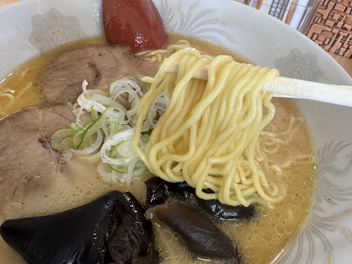 Read more神居の住宅地にあるラーメン屋さん。と言ってもバスも通る道か。角の店なので駐車場は直角に停める感じ。店内はカウンター、テーブル、入ったことがないが小上がりとある。売りは辛味噌ラーメン。4段階の辛さから選択できる。以前ちょい辛食べたが、そこまで辛くなかった。醤油ラーメンは豚骨魚介と言った感じで、和のテイストもある。今回は味噌を初めて食べた。味の濃いめ薄め麺の硬さ等は好みに応じてくれる。味噌だともやし等が乗ってるのが一般的だがここは、キクラゲ、メンマ、チャーシューと普通のトッピング。さて、辛味噌の時は感じなかったが、味噌はやや薄めだった。甘さはない味噌なので、濃いめで頼んだほうがパンチが出るかなと思った。麺は中細で粘度を感じる水分多めの麺だね。小ライスにはしっかりとたくあんもついてる。ただここはコスパがかなり良い。最近では醤油ラーメンでも1000円を超えてくる店がチラホラ出てきたが、醤油塩は750円、味噌は800円とかなりコスパが良い。小ライスも今時100円とは嬉しいね。卓上に無料で入れられるガーリックチップが置いてあるが、それがまた美味しい。丼ものでカツ丼、豚丼もメニューに並んでるが、一回それもチャレンジし...
