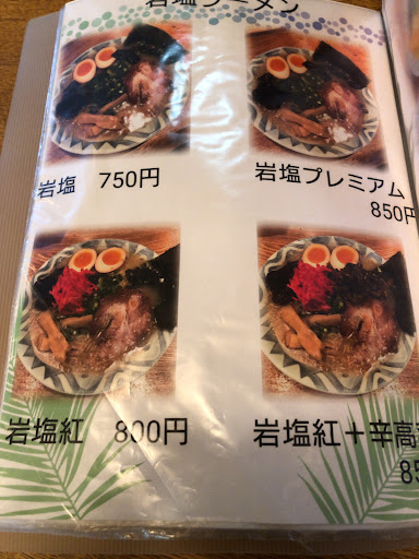 2022年4月11時半近くに、初めてお邪魔しました風沙さん。クチコミでは高評価と定評価にしっかり分かれてて、ちょっとドキドキ。 アルコール消毒して入り、立ち止まってから相方がどこでも良いの?と声をかけ、(厨房から出る気無しなので)どうぞとの返事で、テーブル席に。先客のお客さんは1名のみで、食事中…調理場には女性2名がいますが、かなりの時間放置…。しっかりメニューを見て決めて待ってても、まだ放置(^-^; 厨房で普通に働いてます。やっとお姉さんが水ポットを持ってきてくれ、スタンダード味噌とスタンダード岩塩塩を頼みました。コップはテーブルにありました。 ラーメンは思ったより早く提供されました。放置時間より早いくらい(笑)