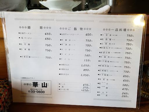 中華の華山 旭川市永山にある中華料理屋さん。 旭川一のあんかけのお店ではと聞きいってきました。 駐車場は前に4台いけるかな?かなり厳しかったです。後はお店の横に1台~2台。他の場所は駐車禁止なのでお店にご迷惑をかけないようにしましょう。