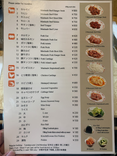 Read more平日であろうと、開店と同時にすぐに埋まってしまう。 常連さんでいつも賑わっている、昔ながら〜の焼き肉屋さん。 日にちが決まったらまずすぐ予約がおすすめ。少ない人数なら当日運良く入れる時もある。 一人前の盛りがよく、皿には必ず焼き野菜付。今時のご馳走な高級焼き肉の美味しさじゃなく、懐かしい方の美味しさの焼き肉。 気のいいおじちゃん、元気なおばちゃんのお店。 焼くのも炭じゃなく、テーブルには懐かしいガス台。 タレも美味しくて、どっぷりつけて、ご飯にちょんちょん。 白米が進んじゃいます。そして、お腹いっぱい食べても会計が、、、!とにかく安い!! 子供達が小さい頃は、帰り際にきちんと手渡しで板チョコを1枚ずつくれるのが嬉しくて。 ありがとうございました。 いつまでも、お元気でずーと続...