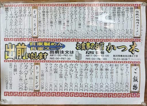 Read moreかつラーメン塩をよく出前で注文しますとにかく安い 麺だけ先に食べて残ったかつをちびりちびりビールをゴクゴクとてつもなく幸せな時間にさせてくれますあっと言う間にラーメンも完つゆです塩ラーメンは味の誤魔化しが効かない塩ラーメンが美味しいとこは味噌も醤油も美味しいかもしれません R6.1 出前で五目ラーメン(醤油)と餃子配達してもらいました、初めての醤油は尖った感無し普通においしい醤油味五目の具は(チャーシュー、メンマ、輪ネギ、玉ねぎ、もやし、白菜、人参、かまぼこ、ワカメ、エビ)大盛りは腹パンに餃子もデカいですR6.2から値上げしますお...