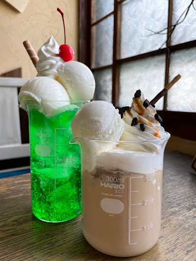 It is a cafe that has been renovated from an old private house.The interior was very fashionable and lovely.The atmosphere was relaxed and nice, and I felt very relaxed.There was a big window, and it was very nice to be able to feel the greenery from there.There was a walk-only road next to and around the cafe, so I could feel nature and it was very nice. The drink container was a beaker used at school and it was very cute.I thought it was very rare to use beakers, but when I remembered school, I felt a little nostalgic. I was surprised that the food was served faster than I expected.Thank you very much. The master was kind, and I felt that there were many regular customers. I felt like I could see a new world with various books.I felt peaceful, and it was very comfortable, so I would like to visit again if I...
