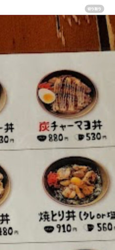 Read more実際の写真とメニューにあるチャーマヨ丼の写真載せておきます。酷すぎます。 家族で初めて入店。 1400円の丼とラーメンのセット2つと1200円のラーメンセット1つ注文。 ラーメンは美味しかったが、チャーマヨ丼が写真と全然違いベッタリマヨネーズがついており流石にしょっぱすぎて店員さんを呼んだところ、私がこれは間違えなどではなくこのマヨネーズの量なのですか?と聞いたところ通常より多めにマヨネーズをかけてるとの事。ここで疑問なのは多めにかけるのであらばお客様にマヨネーズ多めにしますか?と事前に聞く接客スタイルが普通なのでは?と思います。今後改善するのであればマヨネーズの量は毎回ちゃんと聞いた方がいいと思います。更に帰り際にお会計が間違っており、店員さんにチャーマヨ丼しょっぱすぎて食べれない事を店員さんに伝えた時にチャーマヨ丼の料金は要らないので単品会計にしますと言われた旨を伝えたところ食べなかったんですねと言われ、いや食べたかったけど食べれないくらいしょっぱすぎるものを作ったのはあなた達でしょと思い嫌な思いをしました。私も許せなかった為、食べなかったんですねじゃなく食べたくても食べれなかったんですと伝えて最悪な思いをしてお店をあとにしました。私が何時に行ったかは店員さんが理解してるはずです。 もう行く事はないでしょう。 残念でした。 ちなみにチャーマヨ丼は肉の味が分からないほどマヨネーズのしょっぱさしか味がありませんでした。
