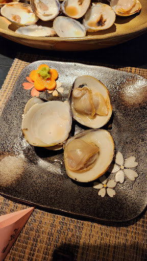 There's a dude just grilling clams in sake nonstop 😂 they serve these clams in 3 per serving on top of whatever you ordered.