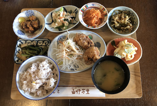 Read more古伊万里御膳(1200円)とぜんざいソフトクリーム(500円)をいただきました。 この日の古伊万里御膳は鶏のから揚げをメインにマカロニサラダ、にんじんしりしり、かぼちゃのいとこ煮など野菜中心のおかずが出てきました。 野菜がどうしても不足してしまいがちなのでこのような御膳はとてもありがたいです!味付けも濃くないのでとてもバランス良くヘルシーだと思います。 ごはんが食べられる建物の隣にソフトクリーム、パン、プリン、古伊万里御膳で出てきたおかずなどが置いてある建物でぜんざいソフトクリームを購入しました。注文すると車まで持っていきますと言われ、とてもありがたかったです! ぜんざいソフトクリームは白玉、抹茶わらび餅、あんこが入っていて、よつ葉のソフトクリームととても相性抜群でした! これがワンコインで食べられるのはとても嬉しいです...