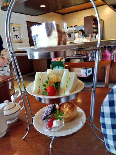 初訪問しました。 以前からアフタヌーンティーを体験してみたく、調べたところここのお店が良さそうでした。 日曜日の午後2時頃の訪問で、広い店内は半分くらい埋まっています。 二人掛けの席に座りました。 メニューは多く、豊富な紅茶メニューに紅茶とサンドイッチ、スコーン、ケーキのセットなどがあります。 遅めの昼食を兼ねてましたし、アフタヌーンティーに決まりです。 紅茶はまだあまり詳しくないのでダージリンを選びました。 ミルクが必要かも聞かれます。 サンドイッチはロースハム、タマゴ、ジャムからタマゴを選択。 スコーンは8種類くらいからチーズスコーン、ケーキはショーケースからチーズケーキを選びました。 10分ほどで紅茶とケーキスタンドが運ばれてきました。 紅茶はポットで提供され、保温のためにティーコジー(カバー)がかかっています。 「3分蒸らしてください」と説明を受けました。 ミルクを頼んだためミルクポットもあります。 ケーキスタンドは下からスコーン、サンドイッチ、ケーキの順。 ミルクティーを入れて、サンドイッチからいただきます。 懐かしい喫茶店のサンドイッチを食べながら、ミルクティーをいただきます。 紅茶も香り豊かでおいしい。 サンドイッチにはポテトチップス、ミニトマトが添えてあります。 サンドイッチを食べて、紅茶をおかわりします。 スコーンにはジャムとクロテッドクリームが添えられ、クッキーは2枚あります。 スコーンはサクサクでクロテッドクリームがとても合っておいしいです。 ミルクを頼んでミルクティーにすると、ちょうど3杯飲める量のようです。ミルク無しだと2杯くらいかな。 ケーキをいただきます。これもおいしいです。 スコーンがチーズだったから、ほかのケーキにするべきだったかな。 全部食べましたが、夏場はスコーンとクッキーのみ持ち帰り可らしいです。 食べ終わった頃にシャーベットが運ばれてきました。 小ぶりのシャーベットで冷やしながら口中をリセット。 落ちついた店内で、アフタヌーンティーを楽しめました。 これで2300円はお得なのでは。 違う紅茶、ケーキ、スコーンを試してみたく、また来たいです...