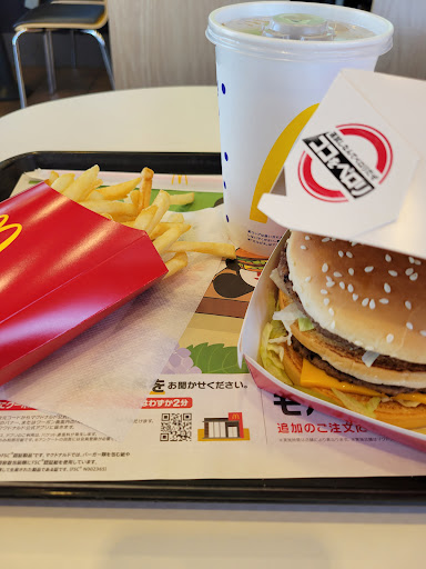 Read moreドライブスルーで昼、マックのビックマックを注文。ポテトはLに変更。今回は、ハズレでした😩凄く、ポテトはシナシナだし、ちょーーポテトが凄く凄く塩味しょっぱすぎ🍟量も、今回は少し少ない感じする😩しょっぱすぎ🍟時間ある人なら電話で交換してもらった方が良いかもね。ビックマックは、パン3枚挟んでおり、ビーフ100%レタス、チェーダチーズは苦手な人でも食べれて癖が無い。マイルドでクリーミー。味付けも丁度良い。ピクルスも甘酸っぱさがあり1個入ってた。嫌いな人は抜いてもらうと良いよ。マスタードも塗ってありますが子供でも食べれる量かな?私も好きではないが食べれた。ソースに多分オニオン?ガーリックの匂いがするので混じってると思います。ハンバーグは満足な量。😊パンもふわふわで美味しかった。 ナゲットも頼みましたが、いつ頼んでも冷めた感じ。 昼マックは平日10半から14時だから、時間ギリなら中の方で買われた方が良いよ。 その方が早いかな。 飲み物、スプライトでしたが全く炭酸がなく😣氷抜きも出来ます。 何となくだが、いつも天気の暑い日は、マックも暇な時は注意⚠️...