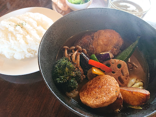 スープカレー専門店でもあり、エスニカルなメニューも多数ある。魅惑のアジアンスープショップということらしい。 まずはオーソドックスに「チキンスープカレー」をオーダー。
