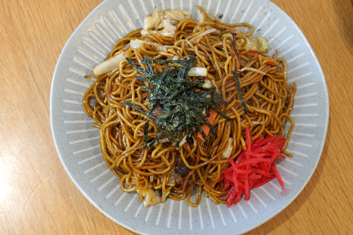 Read more先日ひさびさに頂いた たぶん日本でいちばん売れているであろう スーパーさんのチルドコーナーで出会える 焼きそばが思った以上に美味しくて 焼きそば熱が急速に高まりましたので 旭川のなの花さんにすごくひさびさに伺いました 前回お伺いした際はまだ旭川西武さんの中のときでしたので 旭川駅に移ってからははじめてとなります イオン旭川駅前店さんの駐車場に車を停めて向かいます 新しくなってからの旭川駅もちゃんと見るのははじめてで ひろびろとした空間には旭川家具やモニュメントが置かれ 大きい窓から冬の柔らかな日差しが差し込みます なにやらジャズが流れています 出来た頃広い空間なのにお店が少なく勿体ないなあ と思っていましたがなんとも素敵な空間でした そうこうしているうちになの花さんに到着します はえ~今はこうなっているのね と思い暖簾をくぐると なかはお土産屋さんとなっておりその奥にお店ありました 11時前という時間ですが結構お客様がいらっしゃいます 券売機での注文ですがいろいろなメニューがあり 有名な旭川江丹別地区のおそばなども頂けるようです なおこのgoogleさんで表示されるお店名で今知りましたが こちら旭川のラーメン屋さんでおなじみ須藤製麺工場さんの 直営店ようでそれでは麺が美味しいのも納得です いろいろメニューあるのですが 焼きそば熱に浮かれているわたしは 勿論なの花さん名物の学生やきそばです 食券を渡しますと フードコートのような呼び出しブザーを渡されます ちょうど席が空きましたのでそちらに座ります 先客の方々は これから列車に乗られるであろうスーツケースを持っている方 アジア圏らしき観光客らしき外国の方 この辺りで働いている方なのかお店の方と顔見知りの方 などさまざまです わたしのあとに焼きそば頼まれる方は 時間がかかると言われていましたので 列車に乗られる方はテイクアウト用を購入した方がいいかもです わたしもそれなりに待って呼び出しブザーが鳴りましたので 取りに行きます 学生やきそばは通常の2倍ほどの量とのことですが すごく多いというほどには見た目感じません 海苔がのっています 麺は焼きそばとしては細目に見えます ひとくち頂きます ん~何味でしょう 普通のソース味ではないです だからって醤油味や塩味でもないような、、? 不思議なお味です何味でしょう 具材はキャベツにもやしに人参にチャーシューに といった辺りですが量は控えめです ですが麺は細く食べやすくしっかり麺の美味しさを感じられます ので麺を頂く焼きそばだと思います 量は多めなのかもですが 美味しいのでわりとあっさりと食べきれました 学生さんなら2皿食べられるかもです ごちそうさ...