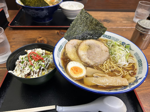 Read more11:20頃に3人で入店、ほぼ席は埋まってましたが入ってすぐ左手の小上がりが空いていたので並ばずに済みました。しかし自分たちの後の人からすぐ並びが出来てて、帰る頃の昼時には10人以上並んでました。 醤油らぁめんとチャーシュー丼(マヨあり)を食べましたが、SUSURU...