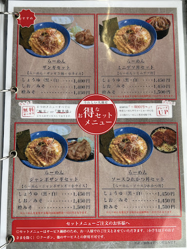 旭川ラーメンを食べるつもりでしたが、店名がついている橙みそと白しょうゆにゲソ丼とザンギのセットを注文しました。 2人で食べきれないかと思う程の量でした。(シッカリ完食しましたが 笑)