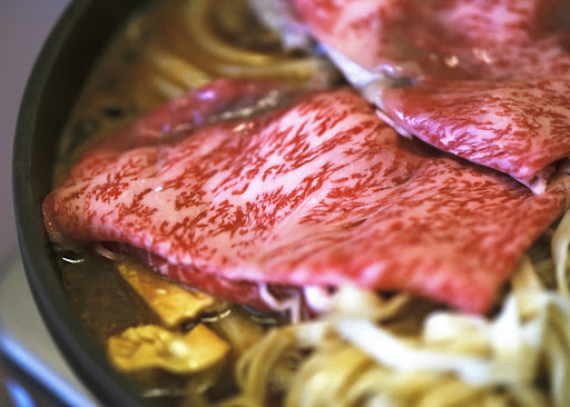 Sukiyaki sauce at Sankousha is made with the usual ingredients like soy sauce, sugar, and mirin, but what sets it apart is the addition of miso, a secret recipe passed down for over a hundred years. This is quite rare for sukiyaki, and the miso gives the broth a richer, more complex flavor with a unique mellow sweetness that enhances the traditional sweet-savory balance.