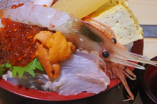 Read moreいい評判は聞いていたので、ずっとね、ココで海鮮丼食ってみたかったんだよね。実際には「海鮮丼」ってメニューは無く、生ちらしなんだけどね。 その中からいただいたのは、ちらし 上生2530円+ご飯中盛55円 ネタはボタンえび、うに、赤身、カンパチ、サーモン、たい、ほたて、ヒラメ、イクラ、トビッコ、カニ、数の子、卵焼きとなります。