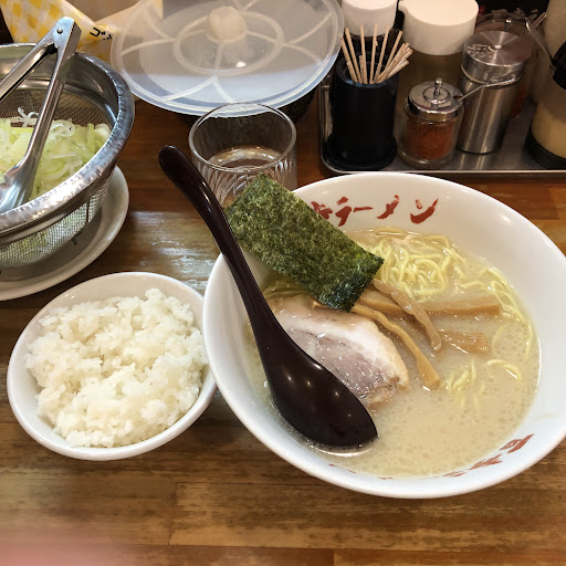 友人と二人で午後8時半頃お店へ。まずは店員さん(店長?)のワンオペ。 会計は食券機。俺はチャーシュー麺を頼もうと探すが無い。(店先のメニューには載っていた) あれれ?と困惑していたら店員さんが「何を頼みたいんですか?」 俺「いや、チャーシュー麺を...」 店員さん「じゃあ普通のラーメンとトッピングのチャーシュー押してください」 分かるか! まあ、いいやと待っていたらチャーシュー麺到着。 スープがぬるい!!!びっくりするくらいぬるい! 思わず友人と顔を見合わせたよ! このお店は高菜とネギがトッピング無料が売りのようだけど、ネギがみじん切りじゃなくてぶつ切りw 食いにくいったらありゃしないw 朝霞駅のそこそこの人気店らしいけど、まぁ、二度目は無いね。 あ、味は可もなくって感じです。