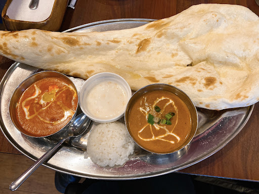 ・カレーの種類は以下です。 * A ダル(豆)/B チキン/C ベジタブル/D キーマ/E マトン/F シーフード/G ほうれん草チキン/H バターチキン/I 海老/日替わり ・2種カレーセットの場合は、上記のA~Fまでのうち2種を選択可能で、スペシャルセットの場合は全てのうちから2種を選択可能となっています。