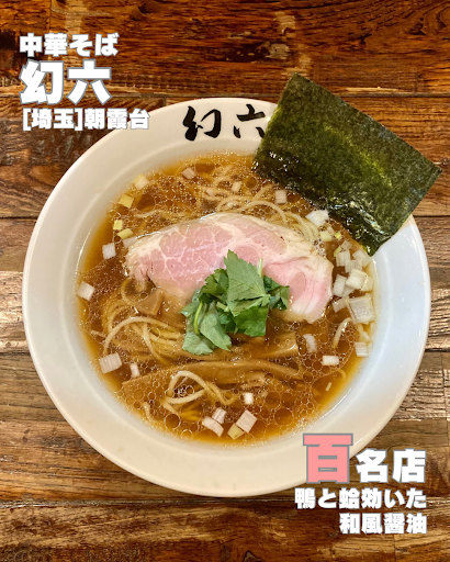 中華そば幻六@埼玉県朝霞市東弁財1-3-10 どうも、さぴおです ______________ 🍥ポイント ✅ラーメン食べログ百名店イースト 初選出店 ✅醤油と甘さある鴨油のコク!アフターに香るハマグリと三葉の和風アクセント ✅塩の人気店 川越『麺匠 清兵衛』の醤油ブランド ✅漬けわさびがメチャ合います  ̄ ̄ ̄ ̄ ̄ ̄ ̄ ̄ ̄ ̄ ̄ ̄ ̄ ̄ [点数] 84点 ☆3.9 [アクセス] 『朝霞台駅』(88m) [休日] 水 [注文メニュー] 醤油そば 900円 [並び・システム] 並びなし・チケット制 [食材] 動物出汁、魚介出汁、香味野菜出汁、チャーシュー、メンマ、みつば、海苔、海苔、中華麺 [味] 醤油 ______________ 🟦メニュー  ̄ ̄ ̄ ̄ ̄ ̄ ̄ ̄ ̄ ̄ ̄ ̄ ̄ ̄ ・醤油そば ・醤油つけそば ・煮干しつけそば ・油そば