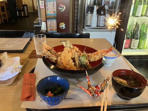 以前に、ご夫妻でYouTubeをやってる動画で、綺麗な奥さんが食べてるのを観て、行く機会を伺って居ました。やっと2月11日に、訪問する事が出来ました。頼んだのは、お店おすすめの天まる丼です。配膳されると、花火が点いていて、動画を撮りましたが、余りにも大きな丼に、心の声が動画に拾われてしまいました。天ぷらは、衣が少し厚めでしっかりしたタイプでした。タレは、甲乙の付け様のない感じで、普通でした。残念だったのは、玉子の天ぷらが揚げて居る時に、爆発してしまったと思われ、黄身が無く割れていました。解って居る筈なのに、何故そのまま載せたのか疑問に思いました。全体的には値段相当の量で、お得感とかは無く、味にも甘い!。辛い!。のインパクトは無く、普通でした。皆さんも是非一度、食べてみて下さい。駐車場は、道路を挟んだ...