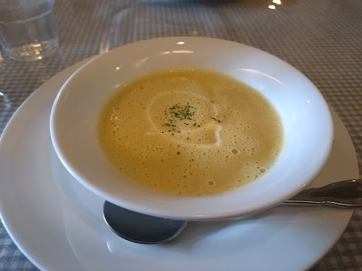 Read moreはじめて、ランチを頂きました。 まず、お店の雰囲気が気にいりました。 20年ほど前に開店されたようですが、塗壁がモダンな雰囲気を感じさせてもらいました。 安納芋のポタージュスープは、やさしい味でした。 メインは、よく煮込まれた牛肉のシチューと、アジの玄米がふりかけられたアーモンド風のソテーでした。 どちらも、しっかりした旨みがあり、満足しました。 最後のデザートは、シャーベットと、バナナのブロマンジェ、イチジクとキューイの熟成したのがついてました。 どれも、おいしく頂きました。 フランス料理ときいて、かたくなったましたが、気軽に楽しめるいいお店だと感じました。 コロナで、外食もままなりませんでしたが、いいお店に出会えました。 ま...
